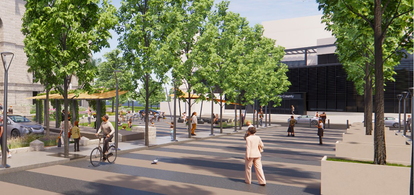 With the removal of the old jail, a new open space will present the opportunity to develop a public plaza anchored and framed by the County Administration Building, new Satellite Administration project and the historic Finance Building. Drawing from these three buildings as well as the Old Stone Jail, we have captured an element of each in the design of the plaza.
