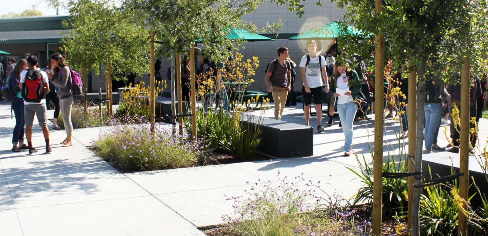 Located in the heart of Silicon Valley, Homestead High School is the alma mater of many who have shaped the high-tech industry. The Fremont District elected to revamp the Homestead campus core, engaging the design team to design a new and more accessible quad with ample seating for student gatherings and events. Inspired by the angular paths found in computer chips, the open, flexible design makes it easy for students to move through and connect at the quad, while also providing distinct zones programmed for dining, rallies, performances, and socializing on the “Senior Slope” mound.