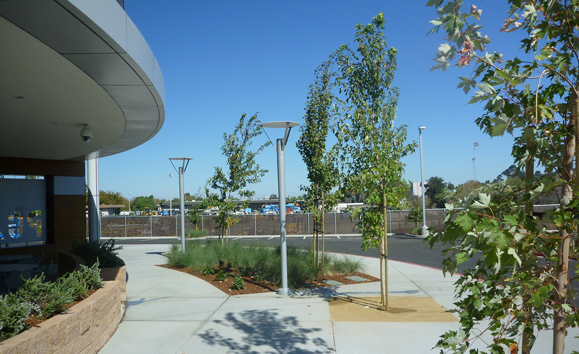 This new PG&E facility in Concord provides 24-hour power distribution services during disasters. The landscape concept for the control center was focused around creating an attractive, functional, and sustainable design for the center’s employees and visitors.
