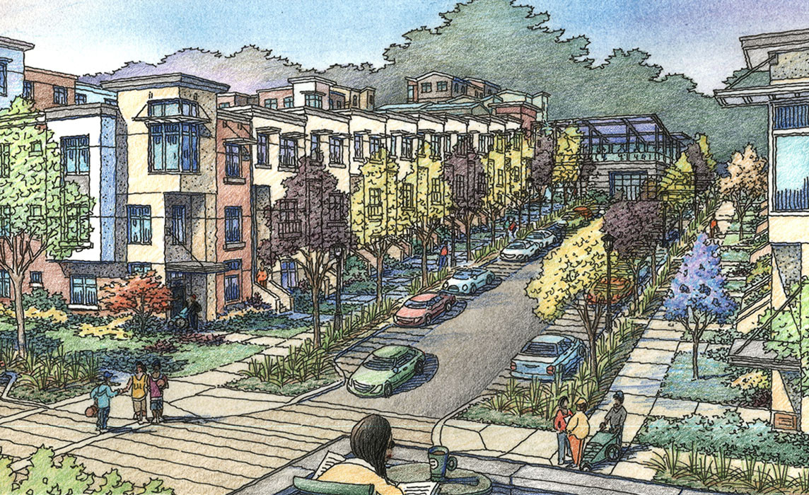 MMP is designing the streetscape and future parks for the Sunnydale HOPE SF development. MMP created the Schematic Master Plan as well as contributed to the Master Infrastructure Plan (MIP) and Master Utility Plans (MUP). Expanding on guidelines established in the MIP, MUP and the Sunnydale HOPE SF Design Standards and Guidelines, MMP authored the Master Streetscape Plan, defining specific design standards for all streetscape elements, including curb lines, landscaping, street trees, sidewalk bulb-outs, street lighting, street furniture and paving. MMP added value to the project by introducing a multiuse path connecting McLaren Park, a large city park, to Herz Playground and beyond, completing a pedestrian oriented circuit. The multiuse path connects straight to the heart of the Sunnydale community where a mixed-use senior center, community center, neighborhood park, and mixed-use retail are located. MMP is now implementing the design standards in the construction design phase. The MSP follows the SF Better Streets Plan and incorporates Green Streets Standards.