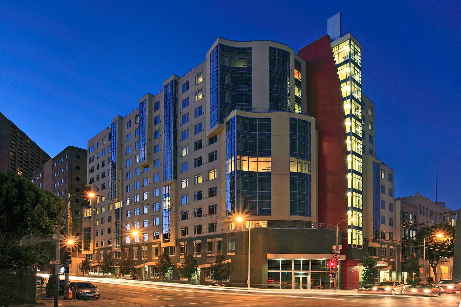 The Tenth & Mission Family Housing & Edith Witt Senior Community projects are located in the Mid-Market neighborhood of San Francisco. These high-density urban infill projects consist of two apartment buildings, a 12-story family housing tower and an 11-story senior housing tower. Between the two towers and over the parking garage, a 6,250 square foot open terrace is devoted to resident activities offering healthy living for both families and seniors.