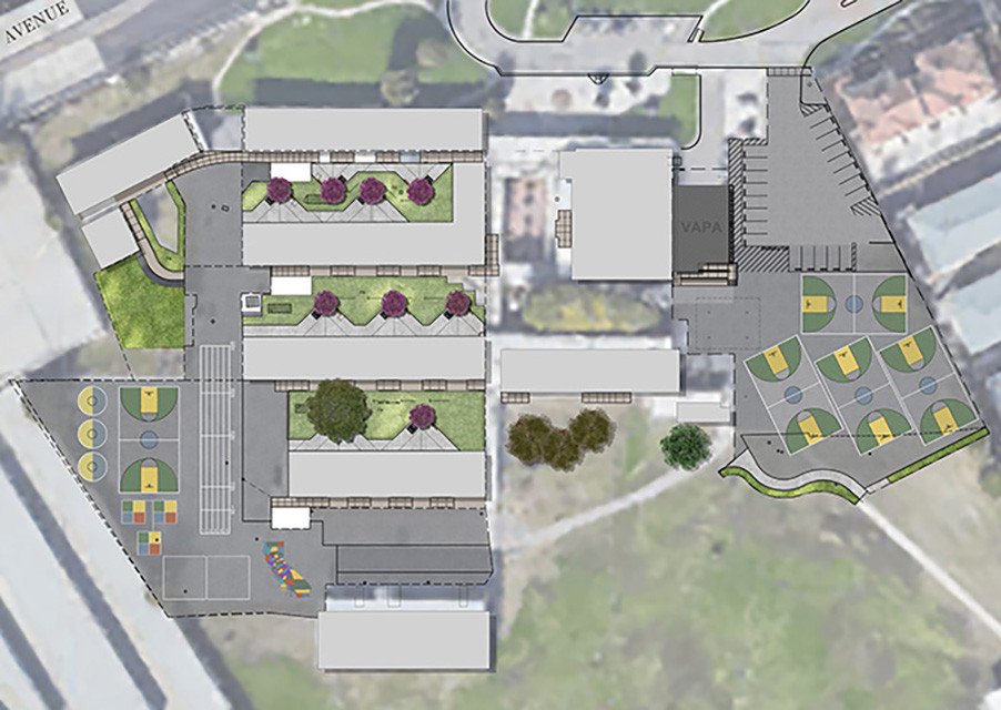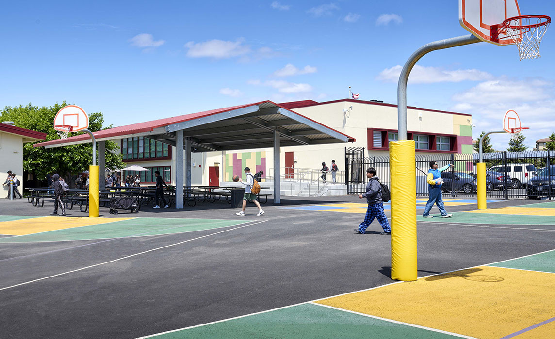 Part of the Hayward Unified School District, Winton Middle School is one of eight local schools built during the post-World War II period. To modernize the school, HUSD chose Merrill-Morris Partners and HY Architects to lead the effort of improving mechanical systems, increase accessibility, and add a new Drama/Music facility. Site improvements included creation of an accessible passenger drop off area, a multipurpose basketball, pickleball, and volleyball play area, and outdoor classrooms to extend the learning environment. In addition to student-cultivated raised planting beds for edible gardens, stormwater management enhancements were incorporated between school buildings as an additional educational opportunity and contributed to a net-zero increase for impervious areas on the site.
